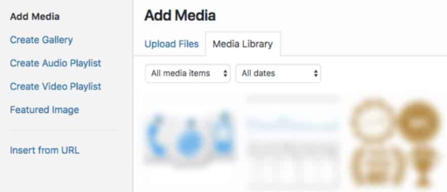 First, let’s look at the Media Library. The Media library allows convenient uploading and accessing of image files and other content for your blog.