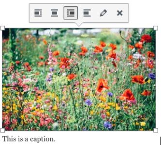 - Preview the result. Your result may show different margin and caption styles, as defined in the style sheet for your WordPress theme. But, in general, your image should appear on the right side of your article column with text flowing around it: